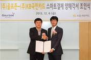 [kjtimes=김한규 기자] KB국민카드는 골프존과 스마트 결제 도입을 위한 업무 제휴 양해각서를 체결했다고 6일 밝혔다.이번 업무협약으로 골프존 시스템이 설치된 5000여 스크린 골프장과 골프장 마켓에서 앱카드 ‘K-모션’과 비접촉식 결제 서비스 ‘페이온’을 활용한 결제가 가능해 질 전망이다.국민카드와 골프존은 앞으로 스마트 결제 활성화를 위해 다양한 서비스도 공동 개발해 선보일 계획이다.KB국민카드 관계자는 “보다 쉽고 편리한 모바일 결제 서비스를 제공하기 위해 ‘K-모션’의 사용처를 지속적으로 확대해 나갈 예정”이라고 밝혔다.