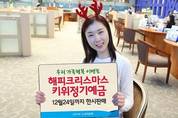 [kjtimes=김한규 기자] 우리은행(은행장 이순우, www.wooribank.com)은 9일 연말연시를 맞아 연 2.85% 금리를 제공하는 ‘해피 크리스마스 키위정기예금’을 판매한다고 밝혔다.‘해피 크리스마스 키위정기예금’은 '우리 가족행복 이벤트'의 일환으로 판매되고 있으며 연 2.85%의 금리를 제공하는 고금리 정기예금이다.오는 24일까지 총 3000억원 범위에서 판매하며, 1인당 1계좌에 한해 1년제로 최대 2000만원까지 가입할 수 있어 소액자금 운용에 적합하다.아울러 내년 1월 10일까지 우리토마스적금, 우리드림하이적금 및 우리톡톡미즈적금을 신규한 고객에 대해 연 0.1%p의 특별금리를 우대 적용한다.한편 우리은행은 기초생활수급자 등 저소득층에게 연 7.5%의 고금리를 제공하는 '우리희망드림적금'에 가입한 100명의 고객에게 따뜻한 난방기구를 제공하는 이벤트도 함께 진행할 예정이