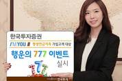 [kjtimes=김한규 기자] 한국투자증권(사장 유상호)은 '아임유-평생연금저축' 가입 고객의 연말 소득공제 혜택을 위한 '행운의 777이벤트'를 진행한다고 3일 밝혔다.이번 '행운의 777이벤트'에서는 한국투자증권의 아임유-평생연금저축 계좌 잔고가 이달 말일 기준 400만원이상인 고객 중 777명을 추첨하여 현금 3만원을 계좌로 입금해준다.한국투자증권 기존 개인연금펀드 보유 고객의 경우도 신연금저축계좌인 아임유-평생연금저축 계좌로 전환하면 이벤트 참여가 가능하다.한국투자증권은 이밖에도 아임유-평생연금저축 계좌 내 이벤트 대상펀드 신규가입고객을 대상으로 매월 10만원이상 3년이상 자동이체 신청 고객 전원에게 1만원 모바일 백화점상품권을 증정하며, 400만원이상 납입 고객에게는 납입금액 구간별로 최대 5만원까지 모바일 백화점상품권을 증정하는 이벤트도