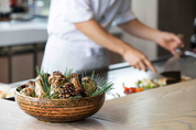 [KJtimes=유병철 기자] 시각과 미각을 모두 만족시키는 셰프의 화려한 즉석 철판 요리를 경험할 수 있는 그랜드 하얏트 서울의 테판 레스토랑은 10월 7일부터 10월 18일까지 단 12일간 가을 소나무의 향기를 가득 품은 자연산 송이버섯을 활용한 송이버섯 프로모션을 선보인다. 신선한 완도 전복에 송이버섯, 김치 뵈르 블랑 소스를 더해 풍미를 살린 애피타이저를 시작으로, 차이브와 송이버섯 향이 조화롭게 어우러져 식욕을 돋우는 송이버섯 수프로 이어진다. 메인 코스는 점심에는 한우 등심 요리나 메로 빠삐요뜨 중 한 가지를 선택할 수 있고, 저녁에는 두 가지 모두를 맛볼 수 있다. 특히 생선 및 각종 재료를 종이로 감싸 오븐에 굽는 프랑스식 요리법 빠삐요뜨를 철판 위에서 구현한 메로 빠삐요뜨는 종이 대신 고온에서 녹지 않는 특수 필름 안에 메로, 송이버섯, 트러플 콩소메 등을 넣고 묶은 뒤 철판 위에서 끓여 완성하기 때문에 고객의 눈과 입을 동시에 사로잡는다. 그리고 마리네이드 된 한우, 송이버섯, 버섯 피클 등을 불판에 볶아 버섯 특유의 풍미를 가득 느낄 수 있는 바비큐 스타일의 볶음밥, 카라멜라이즈된 무화과와 밤 아이스크림을 올린 수플레 팬케이크가 제공된다.
