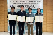 [KJtimes=김봄내 기자]대상그룹이 한국-일본 연계형 ‘글로벌 워케이션(Work+Vacation)’ 프로그램을 도입했다고 11일 밝혔다. 이번 프로그램은 한국에 근무하는 대상그룹 직원들이 일정 기간 동안 일본에서 현지 업무 환경을 경험하는 등의 형태로 진행된다. 이에 앞서 대상그룹은 글로벌 워케이션 프로그램 운영을 위해 지난 7일, 일본 미야자키현 휴가시(宮崎県 日向市)와 공식 업무협약(MOU)을 체결한 바 있다. 글로벌 워케이션을 통한 지역 공공 가치의 공동 창출과 한-일 상호 지역 및 기업 교류 확대, 상호 과제 해결 등을 목표로 함께 협력하기로 했다. 협약식에는 최대영 대상홀딩스 기업문화팀장, 사토시 니시무라(Satoshi Nishimura) 일본 휴가시장 등이 참석했다. 글로벌 워케이션 프로그램은 대상그룹 계열사 직원이라면 누구나 신청 가능하다. 선정된 직원에게는 전용 업무 공간과 숙소를 제공한다. 실제로 지난 4일부터 8일까지 4박 5일간 대상홀딩스㈜, 대상㈜, 대상웰라이프㈜, 대상다이브스㈜ 등 대상그룹 계열사 직원 5명은 일본 미야자키현 휴가시를 방문해 첫 글로벌 워케이션 프로그램을 직접 체험했다. 참가자들은 전용 근무 공간에서 원격으로 업