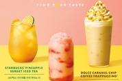 [KJtimes=김봄내 기자]㈜스타벅스커피 코리아(대표이사 송호섭)가 본격적인 더위가 시작되는 여름을 맞아 6월 8일부터 7월 19일까지 ‘스타벅스 파인애플 선셋 아이스 티’를 비롯한 아이스 음료 3종을 새롭게 선보인다. ‘스타벅스 파인애플 선셋 아이스 티’는 달콤한 파인애플과 캐모마일 티, 상큼한 라임이 청량하게 어우러진 음료로, 카페인이 함유되어 있지 않아 남녀노소 모두가 가볍게 즐길 수 있다. 특히, 휴양지의 석양을 닮은 비주얼로, 일상을 벗어나 먼 곳으로 떠나는 여름 휴가가 그리운 고객에게 잠시나마 기분전환이 될 수 있도록 이국적인 컨셉으로 기획되었다. 아울러, 상큼 달콤한 딸기와 레몬이 조화롭게 어우러진 대중적인 맛의 ‘딸기 레몬 블렌디드’와 스타벅스의 스테디셀러 음료인 카라멜 마키아또와 스타벅스 돌체 라떼를 솔티드 카라멜 칩과 함께 재해석한 ‘돌체 카라멜 칩 커피 프라푸치노’도 만나볼 수 있다. 이와 함께, 정통 스타일의 바게트와 리코타 치즈, 살라미가 매력적인 ‘리코타 치즈 바게트 샌드위치’, 식빵 사이에 감자샐러드가 가득 들어있는 ‘포테이통통 샌드위치’ 등 푸드 4종과 홈카페와 홈캠핑 분위기를 동시에 느낄 수 있는 ‘서머 포레스트 리