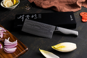 [KJtimes=김봄내 기자]외식 프랜차이즈 전문기업 더본코리아(대표 백종원)가 고급스러운 소재와 외관을 겸비한 '백종원의 다마스커스 중식도(이하 '백종원의 중식도')'를 출시하고 6월 17일(목)부터 22일(화)까지 1차 한정판매 한다고 밝혔다. 이번 '백종원의 중식도'는 코로나19 이후 집에서 직접 요리를 즐기는 '홈쿡' 열풍이 불면서 주요 주방용품 중 하나인 칼에 대한 소비자들의 관심이 급증함에 따라 선보인 제품이다. 백종원 대표의 상징과도 같은 중식도를 일반 소비자에게 초점을 맞춰 누구나 안전하고 편리하게 사용할 수 있도록 선보였다. '백종원의 중식도'는 고탄소강 스테인리스 '다마스커스' 소재를 사용한 점이 가장 큰 특징이다. 강철과 연철을 67겹 쌓아 만든 재질로, 날카로운 절삭력과 쉽게 녹슬지 않는 내구성을 자랑한다. 특히 강철과 연철이 겹겹이 쌓이면서 만들어낸 특유의 물결무늬에 백종원 대표의 사인 각인까지 더해져 고급스러운 외관까지 겸비했으며, 손잡이는 안정적인 무게감으로 편안한 그립감을 제공한다. 뛰어난 절삭력과 중량감이 주는 안정성 덕분에 다양한 요리에 활용할 수 있으며, 채소, 육류, 생선 등 재료의 종류와 관계없이 사용이 가능하