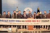 [kjtimes=정소영 기자] 전국 농축협조합장(이하 조합장들)들이 국회 법사위의 농협법 개정안 처리 지연에 대해 “일부 특정 단체의 허위 과장된 주장을 농업계 전체 의견인 것처럼 핑계돼 법안처리를 미루면 안 된다”는 입장을 냈다.조합장들은 하루 전인 5일 국회소통관에서 기자회견을 열고 "농업·농촌·농업인의 발전을 위하고 농협의 책임과 역할을 강화하기 위해 마련된 농협법 개정안을 원안대로 신속하게 처리해 줄 것을 촉구한다"고 밝혔다.이들은 "농축협 조합장, 농업단체는 지난해부터 수차례 성명과 기자회견을 통해 농협법 개정의 필요성과 당위성을 강조해 왔지만, 법사위는 이를 철저히 외면하고 안건 상정조차 하지 않은 채 농업계 의견을 묵살하고 있다"고 지적했다.이어 "농업의 생존 문제를 정치적으로 이용해선 안 된다. 법사위 회부 7개월이 넘도록 농협법 개정안의 처리를 지연시키고 있는 행위는 일부 법사위원들의 개인적 이해가 관계된 것은 아닌지 의심스럽다"고 강조했다.특히 "농협법 개정안은 어려움에 처한 농촌을 살리기 위한 법안"이라며, "도시농촌의 농촌조합 지원을 위한 상생기금 신설 및 농업지원사업비 부과율 상향을 포함하고 있다"고 주장했다.또한 "저출산 고령화와 농
