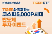 [KJtimes=김지아 기자] 미래에셋자산운용이 코스피 5,000P 시대를 맞아 'TIGER ETF와 함께하는 반도체 투자 이벤트'를 진행한다. 미래에셋자산운용은 26일 "이번 이벤트는 국내 증시 상승을 견인한 한국 반도체 산업에 투자하는 'TIGER 반도체TOP10 ETF(396500)', 'TIGER 반도체TOP10레버리지 ETF(488080)'를 대상으로 진행한다"고 전했다. 코스피 지수가 5,000P를 돌파한 가운데 최근 1년간 국내 증시는 반도체 업종을 중심으로 강한 상승세를 보였다. 인공지능(AI) 산업과 반도체 슈퍼사이클에 대한 기대감이 이어지며 '삼성전자'와 'SK하이닉스' 등 반도체 대표 종목들이 지수 상승을 견인했다. 지난 23일 기준 코스피 지수가 최근 1년간 96.71% 상승하는 동안 'TIGER 반도체TOP10 ETF'와 'TIGER 반도체TOP10레버리지 ETF'는 각각 126.85%, 327.98%의 수익률을 기록하며 코스피 지수를 상회했다. 'TIGER 반도체TOP10 ETF'는 23일 기준 삼성전자와 SK하이닉스의 편입 비중 합계 58.02%로 국내 반도체 ETF 중 가장 높고, 반도체 밸류체인에 집중된 포트폴리오를 바탕으로 연