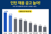 [KJtimes=김봄내 기자]직무 중심 채용 트렌드가 지속 확산되는 한편, 팬데믹 종식에 따른 경제 활성화에 대한 기대감으로 미래 인재를 육성하는 ‘인턴직’ 채용도 늘어나는 것으로 나타났다. 커리어테크 플랫폼 사람인이 자사의 2019년부터 2022년까지 4개년의 1분기 인턴 공고 변화 추이를 분석한 결과, 올해 1분기 인턴 공고는 지난해(2021년) 대비 17.5% 증가했다. 2020년 1분기에는 코로나19 팬데믹 충격으로 전년(2019년) 동기보다 인턴 공고가 19.3% 감소하기도 했다. 그러나 고용 시장의 회복세가 꿈틀대던 2021년 1분기에는 2020년 대비 45.5% 급증했으며, 금년에도 증가세를 유지하고 있다. 인턴 채용이 많이 늘어난 업종은 무엇일까. 올해 1분기를 기준으로, 지난해 1분기보다 증가율이 가장 높은 업종은 ▲서비스업(44.9%)으로 집계됐다. 거리두기 완화와 ‘위드 코로나’에 따른 ‘엔데믹’ 기대감으로 인력 수요가 늘어나며 공고가 크게 늘어난 것으로 분석된다. 서비스 업종은 2020년 1분기에 전년(2019년) 동기 대비 공고수가 49.6%나 급감했으나, 2021년 1분기에는 21.8% 증가하고 올해에도 큰 폭의 증가를 보이고