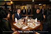 [KJtimes=이지훈 기자]문재인 대통령 부부와 김정은 국무위원장 부부는 19일 오후 7시 평양 ‘대동강 수산물 식당’에서 만찬을 했다. 당초 이날 만찬은 문 대통령이 특별수행원 경제인들을 위해 마련한 식사자리였는데, 김 위원장이 뒤늦게 참석 의사를 밝혀와 두 정상 부부가 함께 하는 저녁 식사가 됐다. 이날 식당에는 일반 시민들이 퇴근 후 저녁 먹기 위해 가족단위로 식당을 찾고 있는 모습이 눈에 띄었다. 부부, 직장동료 단위 보다는 대규모 가족 손님이 더 많았다. 문 대통령은 김 국무위원장을 기다리는 동안 식사 중인 북한 일반 주민 테이블을 찾아가 인사를 나눴다. 먼저 초밥식사실에서 식사중인 가족들에게 “어떻게 오셨습니까”라고 먼저 말을 건네자 “3대가 함께 왔습니다”라는 답변을 들었다. 서양 료리 식사실에서는 “음식 맛있습니까? 우리도 맛보러 왔습니다”면서 “아마도 우리가 다녀가고 나면 훨씬 유명한 곳이 될 것 같습니다”라고 말하기도 했다. 북한 주민들은 일어서서 박수를 치며 문 대통령과 악수를 나눴고, 문 대통령이 손을 흔들자 북한 주민들은 따라서 손을 흔들기도 했다. ‘대동강 수산물 식당’은 올해 7월 30일 처음 문을 연 곳이다. 건물은