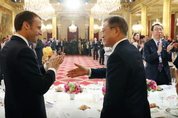 [KJtimes=이지훈 기자]"해외 순방 과정에서 이제껏 받아보지 못한 환대를 받았다." 윤영찬 청와대 국민소통수석이 서면 브리핑을 통해 전한 말이다. 프랑스를 국빈방문 중인 문재인 대통령은 15일(현지시각) 에마뉘엘 마크롱 대통령 주최로 대통령궁인 엘리제궁에서 열린 한·프랑스 정상 만찬을 즐겼다. 애초 정상 만찬은 1시간 30분가량 진행될 예정이었지만 화기애애한 분위기 속에 3시간을 꽉 채워서 진행됐다고 윤영찬 청와대 국민소통수석이 서면 브리핑을 통해 밝혔다. 윤 수석에 따르면 애초 오후 8시에 시작하기로 했던 만찬은 프랑스 측 사정으로 30분이 늦어진 오후 8시 30분에야 시작됐다. 양국 관계자들은 만찬 예정시간이 1시간 30분이었던 만큼 늦어도 오후 10시께 끝날 것으로 예상했다고 한다. 그러나 만찬이 시작되자 포용성장, 부의 대물림, 공정경쟁, 국가의 역할, 남북·한일·북중미 관계 등 많은 현안을 놓고 두 정상의 깊이 있는 대화는 길어진 것으로 알려졌다. 두 정상 내외는 1시간 30분가량을 서로의 대화에만 집중했다는 게 윤 수석의 설명이다. 프랑스식 식사가 끝나자 마크롱 대통령은 자신의 측근과 만찬에 참석한 고위인사들을 헤드테이블로 불러