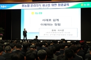 [KJtimes=김봄내 기자]농협중앙회(회장 강호동)는 1일 본관에서 범농협 팀장 이상 853명의 임직원들을 대상으로 고강도의 청렴교육을 실시했다고 밝혔다. 이날 교육은 범농협 임직원들의 윤리 청렴의식 개혁을 위해 이지문 한국청렴운동본부 이사장을 초청하여 ▲ 사례로 알아보는 반부패 법령 ▲ 갑질 성희롱 예방교육 ▲ 청렴하고 깨끗한 농협 구현을 위한 자세 등을 주제로 진행했다. 이번 교육을 시작으로 농협중앙회는 주요 회의 시 윤리교육 의무 실시, 청렴 윤리 대면교육 확대 등을 통해 청렴 농협으로 나아가기 위한 고강도의 청렴교육 및 개혁을 지속적으로 실시할 계획이다. 농협중앙회 지준섭 부회장은 금차 교육을 통해 ▲ 투명한 조직문화 형성 및 대국민 신뢰도 회복 ▲ 윤리경영을 위한 사무소장들의 행동기준 재확립 및 청렴의식 내재화 ▲ 부패행위에 대한 경각심 고취로 사고발생 사전차단 등 농협의 대국민 신뢰 회복을 위한 노력에 모든 임직원의 적극적인 동참을 당부했다.