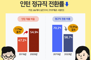 [KJtimes=김봄내 기자]올해 기업의 인턴 채용은 늘어났지만, 정규직 전환률은 오히려 감소한 것으로 나타났다. 구인구직 매칭플랫폼 사람인이 기업 386개사를 대상으로 ‘인턴 채용 현황’에 대해 조사한 결과 54.9%가 올해 인턴을 채용했거나 남은 기간 동안 채용할 계획이라고 답했다. 이는 지난해 결과(47.2%)보다 7.7%p 높아진 수치로, 기업이 정규직 채용 전 인재를 검증하기 위한 과정을 거치려는 경향이 더욱 강화된 것으로 분석된다. 채용 형태는 ‘정규직 전환형’(65.1%)로 압도적으로 많았다. 하지만 지난 해(75%)와 비교하면 10.1%p 줄어든 것으로 나타났다. 다음은 ‘정규직 전환, 체험형 모두 채용’(23.1%), ‘기간제 체험형’(11.8%)이 뒤를 이었다. 또, 올해 인턴을 정규직으로 전환한 비율은 평균 56.7%로 나타났다. 그러나 이 수치 역시 지난해 (70.2%)와 비교하면 13.5%p나 줄어들어 인턴 채용 자체는 늘었지만, 정규직 전환은 더욱 어려워진 것으로 분석된다. 그렇다면, 올해 인턴사원의 월급은 얼마일까? 평균 199만원으로 지난해(193만원)보다 6만원 높아졌다. 이는 올해 최저임금 인상분이 반영된