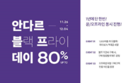 [KJtimes=김봄내 기자]안다르가 1,000여종의 품목을 최대 80% 할인된 가격으로 만나볼 수 있는 역대급 이벤트 ‘안다르 80% 블프데이’를 오늘(26일) 오전 10시부터 다음주 수요일(12월 4일)까지, 약 9일간 진행한다고 밝혔다. ‘안다르 80% 블프데이’는 1년에 단 한 번 진행되는 최대 규모의 프로모션으로 소비자들의 폭발적인 관심이 예상된다. 각 아이템은 한정수량으로 준비되어 상품 소진 시 소진된 품목에 한해 이벤트가 조기 마감될 수 있어 서두르는 것이 좋다. 특히, 신규 회원 가입 고객은 80% 할인가에 10,000원의 추가 할인 혜택을 받을 수 있고, 이벤트기간 동안 안다르 대표 아이템인 ‘에어쿨링 뉴지니 9부’ 1&1을 34,800원에, ‘에어코튼 시리 9부’ 1&1을 36,800원에 구매할 수 있어 합리적인 가격으로 안다르를 경험하고자 하는 사람들에게 이번 안다르 블프데이는 놓쳐서는 안될 기회다. 에어핏 숏슬리브 1&1은 34,300원에, 에어플라이 구스다운 베스트 가격은 59,400원으로, 이벤트 품목만으로도 상•하의 완벽한 애슬레저룩 연출이 가능하다. 안다르는 블프기념 ‘리워드 데이’ 이벤트도 추가
