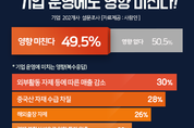 [KJtimes=김봄내 기자]‘신종코로나 바이러스’의 확산으로 중국산 부품 공급이 중단되면서 현대자동차 생산라인이 멈췄다. 이는 2차 벤더기업들에도 영향을 미친다. 또한, 각종 모임 등이 취소되면서 제조업 외의 기업들 역시 영향을 받을 전망이다. 실제로 기업 2곳 중 1곳은 신종코로나 바이러스 감염증 사태로 인해 기업운영에 차질을 빚고 있는 것으로 나타났다. 구인구직 매칭플랫폼 사람인이 기업 202개사를 대상으로 ‘신종코로나 바이러스 확산이 기업에 미치는 영향’에 대해 조사한 결과, 절반 가량(49.5%)이 실제 ‘영향을 받는다’고 답했다. 영향으로는 관광객 감소, 외부활동 자제 등에 따른 ‘매출 감소’(30%, 복수응답)를 첫 번째로 꼽았다. 계속해서 ‘중국산 자재 수급 차질’(28%), ‘해외출장 자제’(26%), ‘경제 불확실성으로 인한 투자 위축’(23%), ‘해외 수출 감소’(21%), ‘경영성과 목표 조정’(18%), ‘인력 부족’(13%), ‘신규 채용 축소 및 채용 취소’(12%), ‘공장 중단’(7%) 등의 답변이 이어졌다. 이들 기업 중 63%는 악영향을 최소화하기 위한 대응책을 준비 중이라고 답했다. 대응책으로는 '화상회의 등 비대