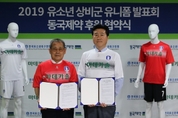 [KJtimes=김승훈 기자]동국제약(부회장 권기범)은 어제 19일(수) 오후, 서울시 종로구 경희궁길에 위치한 축구회관에서 한국유소년축구연맹(KYFA)과 ‘2019 유소년 상비군(대표팀) 유니폼 발표회 및 후원 협약식’을 가졌다. 이번 협약으로 동국제약은 유소년 대표팀의 유니폼 제작 등에 필요한 후원금을 전달하고, 한국유소년축구연맹이 주최하는 대회에 마데카솔을 비롯한 구급용품도 지원하게 된다. 협약에는 한국유소년축구연맹 김영균 회장과 동국제약 서호영 상무 등 양측 관계자들이 참석했다. 또한, 유소년 대표팀 선수들이 이번 시즌 동안 국제대회에서 착용할 유니폼도 이날 공개됐다. 작년과 컬러는 동일하게 홈(Home) 유니폼은 빨간색 상의와 검은색 하의로, 강하고 역동적인 이미지를 추구했으며, 원정(Away) 유니폼은 흰색 상·하의로 차분한 이미지를 표현했다. 올해 유니폼의 오른쪽 가슴에는 선수들의 움직임을 형상화한 바람개비 문양을 넣어 포인트를 주었다. 홈과 원정 유니폼 모두 동국제약의 ‘마데카솔’ 로고가 들어간다. 한국유소년축구연맹 김영균 회장은 “우리 선수들의 꿈과 도전을 응원하고 후원해 주고 있는 동국제약에 감사드린다”며, “선수들이 그라운드에서