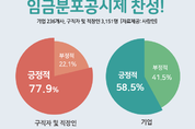 [KJtimes=김봄내 기자]올해 12월부터 기업 및 근로자 특성별 임금분포현황을 공개하는 ‘임금분포공시제’가 시행된다. 이에 따라 구직자들의 정보 비대칭이 해소되고 묻지마 지원 등이 감소될 것으로 기대되는 한편, 기업에게는 다소 부담이 될 수 있다는 의견도 나온다. 실제로는 일선 기업과 구직자, 직장인들은 어떤 입장일까? 구인구직 매칭 플랫폼 사람인이 기업 236개사와 구직자 및 직장인 3,151명을 대상으로 ‘임금분포공시제에 대한 생각’을 조사한 결과, 기업의 경우 ‘임금분포공시제’에 10곳 중 6곳(58.5%)이 ‘긍정적이다’라고 답했다. 이들 기업이 임금분포공시제를 긍정적으로 생각하는 이유는 ‘구직자, 근로자의 알 권리를 보장해주는 것이어서’가 63%(복수응답)로 가장 많았고, ‘근로자 임금 책정에 참고가 돼서’(39.9%), ‘계층 간 임금 격차 해소에 도움이 될 것 같아서’(39.9%)가 동률이었다. 이밖에 ‘근로자들이 과한 임금 인상을 요구하지 않을 것 같아서’(14.5%), ‘구직자들이 과한 임금을 요구하지 않을 것 같아서’(10.1%) 등이 있었다. 반면, 부정적으로 생각하는 기업들(98개사)은 그 이유로 ‘일부 사람들이 상대적 박탈감을