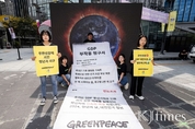 [KJtimes=정소영 기자] “우리 사회가 GDP(국내총생산, Gross Domestic Product)만을 경제·사회 진보의 주요 척도로 삼으면서 삶의 질과 행복, 복지, 기후 등의 중요한 가치들이 외면당하고 있다.” GDP 중심의 경제 시스템으로 인한 부작용을 해결하라며 청년들이 GDP 맹신의 부작용을 알리는 퍼포먼스를 전개했다. 국제환경단체 그린피스 서울사무소는 청년의 날(매년 9월 세 번째 토요일)을 앞둔 19일 오전 10시 30분, 서울시 서대문구 신촌역 인근 유플렉스 앞 스타광장에서 무한성장 시스템의 대안으로 GDP에 대안 지표 수립과 웰빙예산제 도입을 촉구했다. ◆“GDP만을 경제·사회 진보의 주요 척도로 삼으면서 삶의 질, 기후 등 중요한 가치들 외면 당해” 청년 액티비스트들은 불타는 지구의 모습이 구현된 너비 4미터, 높이 3미터 규모의 LED 전광판 앞에서 너비 1.8미터, 길이 5미터에 달하는 초대형 청구서를 들어 보였다. 퍼포먼스 참가자들은 길게 늘어뜨려진 청구서를 통해 “우리 사회가 GDP만을 경제·사회 진보의 주요 척도로 삼으면서 삶의 질과 행복, 복지, 기후 등의 중요한 가치들이 외면당하고 있다”고 강조했다. GDP 부작용 청구서