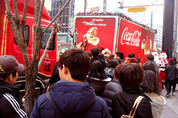 日本でミリアンセラー広告の技法で人気を得ている‘アメリカントラック車両広告’が国内にも上陸して話題になっれいる。この広告の技法は単純に車両に広告ポスターを貼るのではなく、電球を付けて遠くでも目に入りやすく消費者に音楽を聞かせるなど、好奇心を引き起こす装置を持っていて、日本の大手企業と歌手の間で人気である。韓日のビジネスネットワーク企業であるNEXTOMOでは今月の12日からソウルの 新村と江南の周りでコカコーラアメリカントラックを運行させている。車両の頭に大型の排気管があるアメリカントラック全体を赤色をベースにしたコカコーラ広告イメージでラッピングして電球を付け、クリスマスの雰囲気があふれ出すようにした。この車両が道路を走ると遠くからもすぐ目に入る。車両が止まるとサンタ格好のスタッフが人道を歩いている人々にコカコーラのオリジナルプレゼントやミニコラーをあげたり、演奏をしてあげたりするイベントも進行する。 このイベントに対して消費者の反応は熱い。アメリカントラックが停車する所には人々が歩きを止めて、初めて見かける風景を見ていた。ソンサンデNEXTOMO副社長は‘江南・ 弘大・ 建国大・ 常緑院(孤児院)などでトラックの運行をしたけれど、 行く所ごとに大勢の人が集まって、一部の人は スマートフォンで写真を撮ったりしてSNSや個人 ブログに載せたりもした“言っている。日本から韓国まで直接